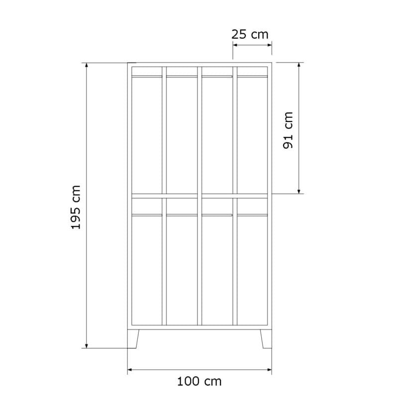 - 4 ganchos para pendurar toalhas ou roupas por compartimento / usuário.