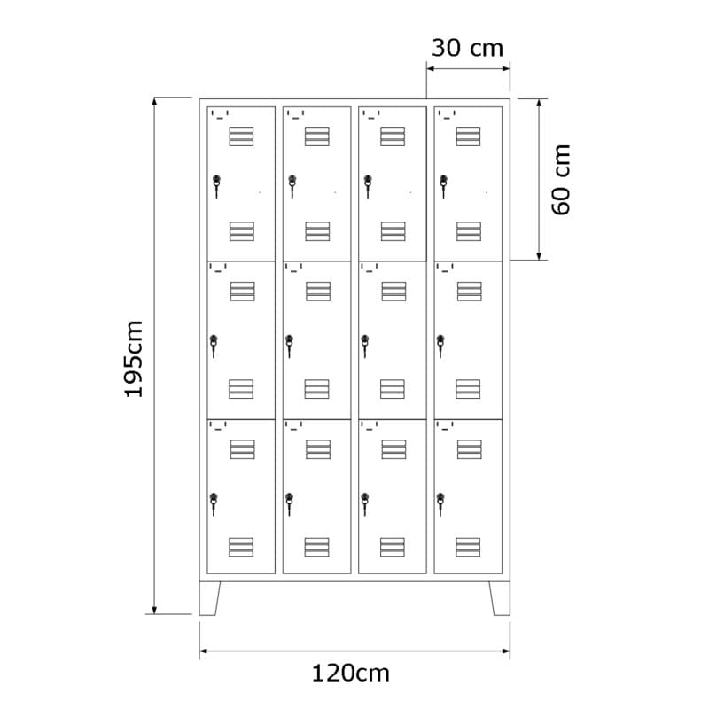 Sugestão de Uso para o Armário Roupeiro de aço para vestiário com 12 portas médias: