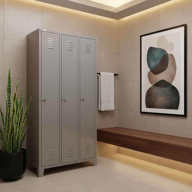 Sugestão de Uso para o Armário Roupeiro de aço para vestiário com 03 portas grandes: